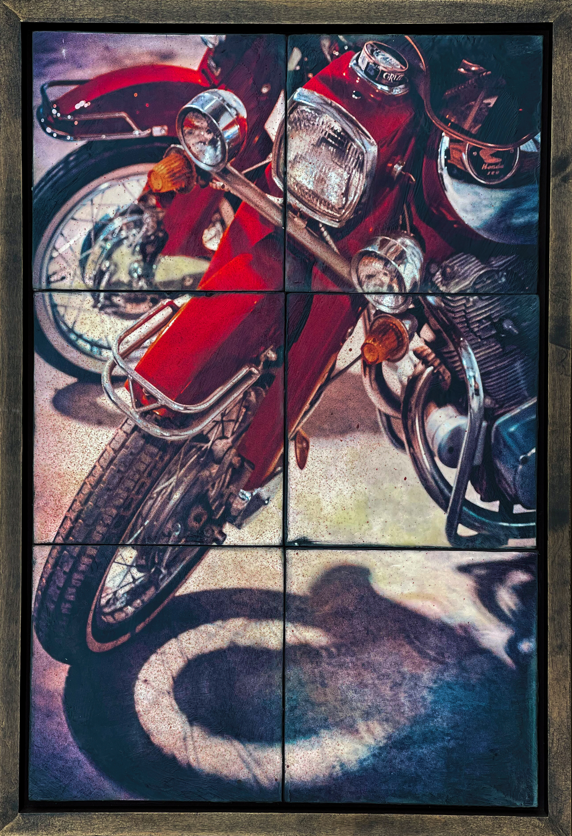 Vintage Honda Dream perfectly restored. Measuing 16 X 24 inches on 6 panels, this image is offered at $360.